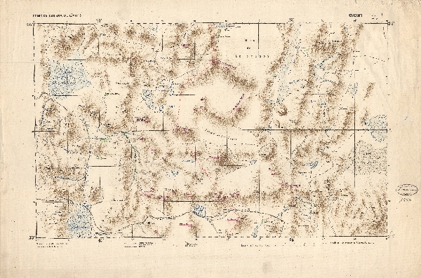 Mapa przeglądowa rejonu Atacama. Rzeźba zaznaczona metodą cieniowania i punktów wysokościowych. Sieć hydrograficzna. Komunikacja - drogi i koleje. Osadnictwo. Granice administracyjne.