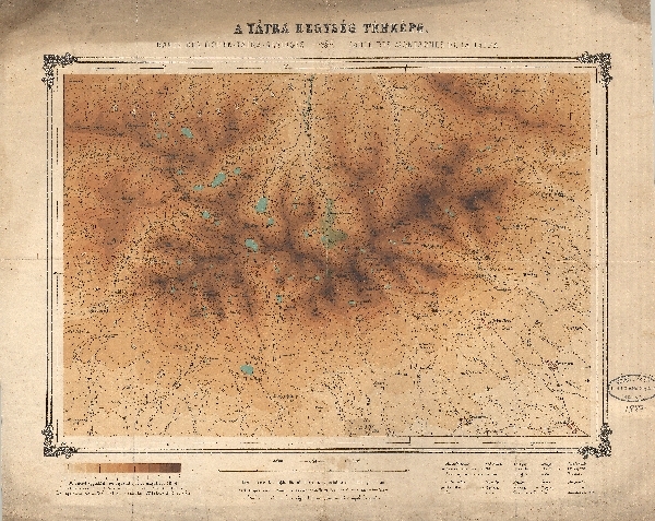Mapa topograficzna Tatr Wysokich. Rzeźba zaznaczona przy pomocy poziomic, warstw i barw. Zaznaczone punkty wysokościowe. Sieć hydrograficzna. Komunikacja - drogi. Osadnictwo. Zaznaczono ważniejsze szlaki turystyczne. Zaznaczone granice administracyjne. Skala hipsometryczna oraz objaśnienia.
