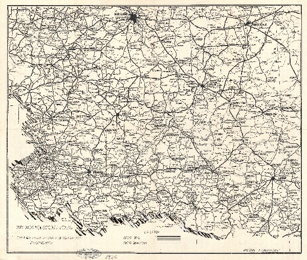 Mapa drogowa południowych województw Rzeczypospolitej (katowickie z Zaolziem, kieleckie, krakowskie, lubelskie i lwowskie) z siecią dróg bitych (trzy rodzaje) i gruntowych. Zaznaczone ważniejsze rzeki oraz miejscowości. Podano odległości pomiędzy miejscowościami. Mapa jednobarwna.