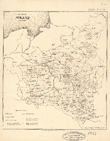 Mapa specjalna Polski przedstawiająca lokalizację punktów działalności Polskiej Akcji Karmienia Potrzebujących Dzieci i ośrodków koordynujących. Zaznaczone sieć rzeczna i granice administracyjne. Osadnictwo.