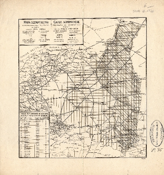 Mapa szematyczna. Uszkodzenia kolei żelaznych w czasie wojen 1914-1920 r.