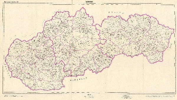 Mapa administracyjna Słowacji. Zaznaczone granice administracyjne i miejscowości.