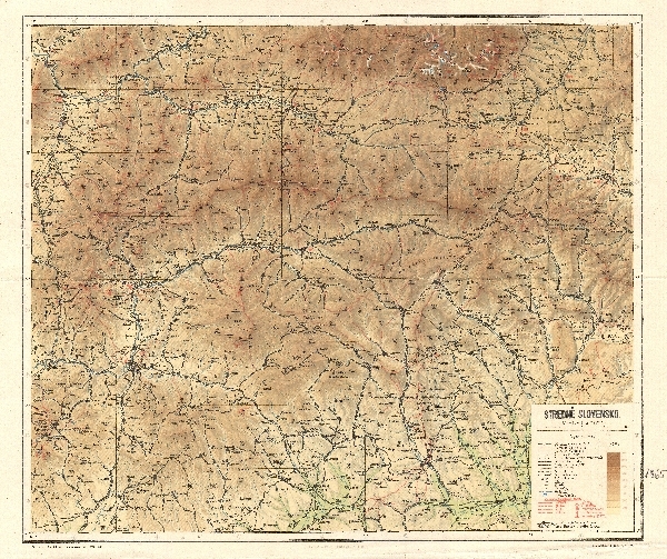 Mapa turystyczna obejmująca środkową Słowację i Tatry. Rzeźba zaznaczona przy pomocy poziomic i skali hipsometrycznej. Zaznaczone punkty wysokościowe. Sieć hydrograficzna. Komunikacja - koleje i drogi, koleje linowe. Osadnictwo. Szlaki turystyczne, obiekty turystyczne. Legenda.