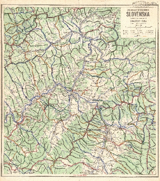 Mapa turystyczna Słowacji w okolicy Žiliny. Rzeźba zaznaczona metodą grzbietową i punktami wysokościowymi. Zaznaczona sieć hydrograficzna i obszary zalesione. Komunikacja - koleje i drogi, koleje linowe. Osadnictwo. Zaznaczone znakowane szlaki turystyczne, obiekty turystyczne, zabytki. Objaśnienia.