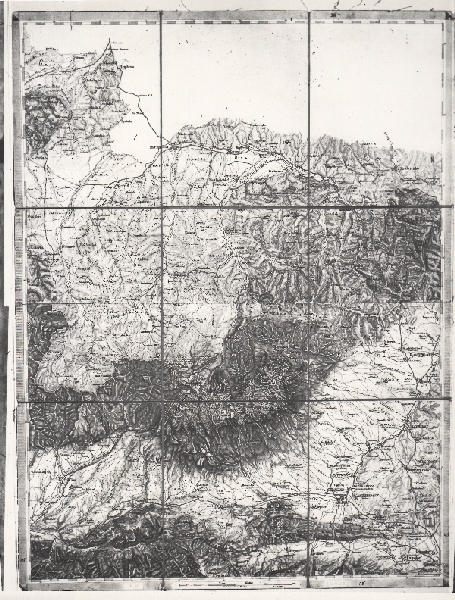 Fotokopia dwóch arkuszy mapy specjalnej Austro-Węgier. Rzeźba przedstawiona metodą kresek. W obszarze wysokogórskim rysunek skał. Sieć hydrograficzna. Komunikacja - drogi. Osadnictwo.