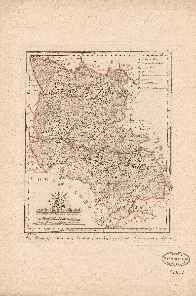 Mapa Spisza. Rzeźba zaznaczona metodą kresek. Sieć hydrograficzna. Zaznaczone obszary zalesione. Komunikacja - drogi. Zaznaczone granice administracyjne barwami, naniesionymi odręcznie na mapę. Objaśnienia. Podziałka w milach niem. i węg.