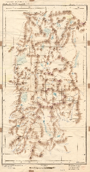 Mapa pogranicza Chile i Argentyny. Rzeźba zaznaczona metodą cieniowania i punktów wysokości. Sieć hydrograficzna. Zaznaczone drogi i granica państwowa.