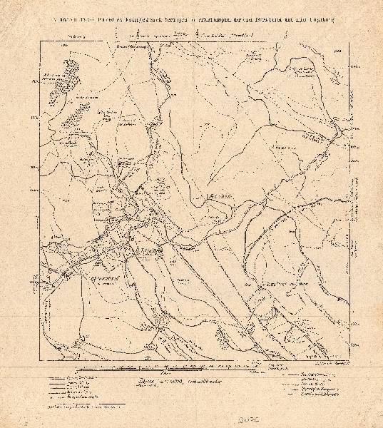 Plan Starego Smokowca i otoczenia. Zaznaczone poziomice, punkty wysoko¶ci i sieć rzeczna. Komunikacja - drogi. Osadnictwo. Poza ramk± skala oraz obja¶nienia.