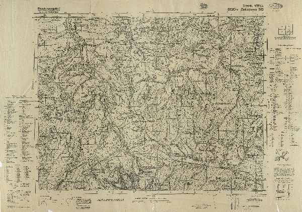 Mapa topograficzna obejmująca Bukowinę, Spisz i Tatry w okolicy Javoriny. Rzeźba przedstawiona metodą poziomic i punktów wysokościowych. Topograficzne szczegóły rzeźby. Zaznaczono obszary zalesione. Sieć hydrograficzna. Komunikacja - drogi. Osadnictwo. Zaznaczone granice administracyjne. Legenda w j. cz., niem. i pol.