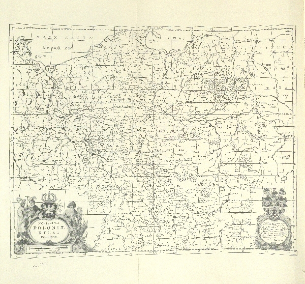Mapa Polski. Obszary górskie zaznaczono kopcami. Nie zaznaczono obszary Tatr i Karpat. Sieć hydrograficzna. Zaznaczono obszary zalesione, miejscowości, granice administracyjne.