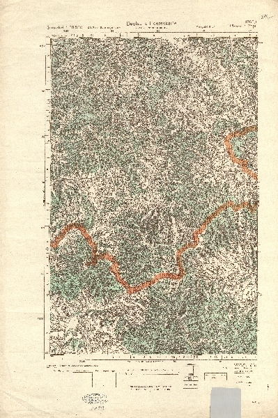 Mapa topograficzna rejonu Plaveč. Rzeźba przedstawiona metodą poziomicowo - kreskową.