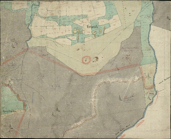 Kolorowana mapa katastralna Doliny Kościeliskiej z uwagami z epoki. Brak legendy.