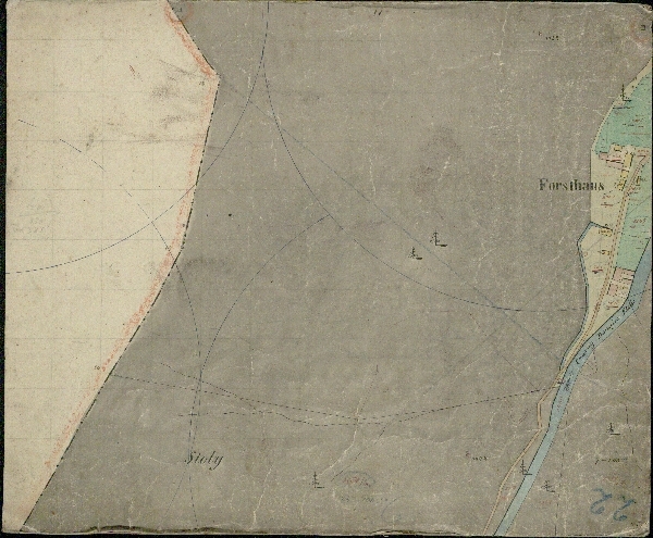 Kolorowana mapa katastralna Doliny Kościeliskiej z uwagami z epoki. Brak legendy.
