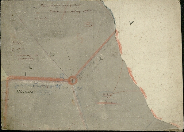 Kolorowana mapa katastralna Doliny Kościeliskiej z uwagami z epoki. Brak legendy.