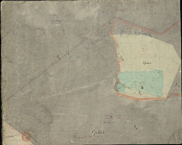 Kolorowana mapa katastralna Doliny Kościeliskiej z uwagami z epoki. Brak legendy.