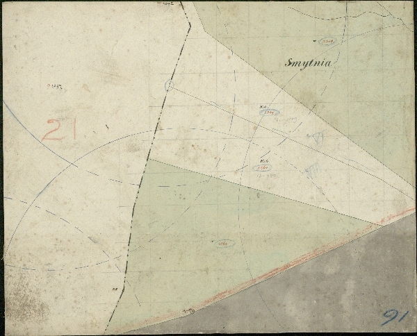 Kolorowana mapa katastralna Doliny Kościeliskiej z uwagami z epoki. Brak legendy.