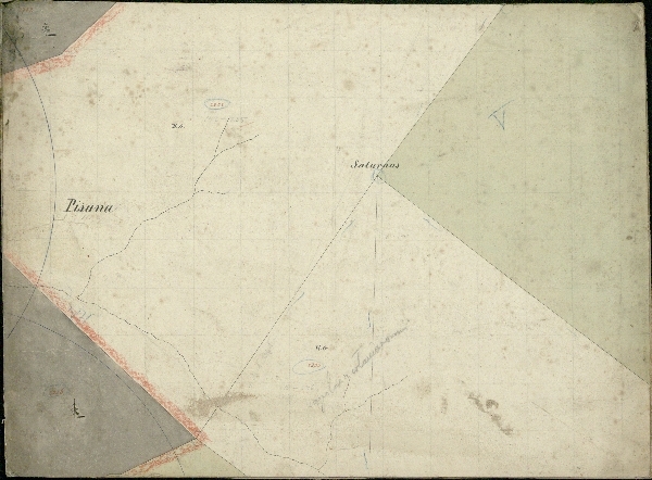 Kolorowana mapa katastralna Doliny Kościeliskiej z uwagami z epoki. Brak legendy.