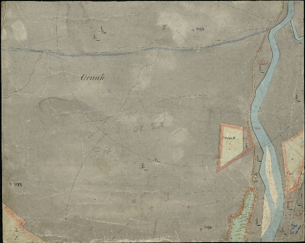 Kolorowana mapa katastralna Doliny Kościeliskiej z uwagami z epoki. Brak legendy.