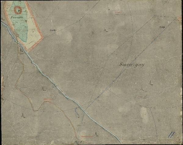 Kolorowana mapa katastralna Doliny Kościeliskiej z uwagami z epoki. Brak legendy.