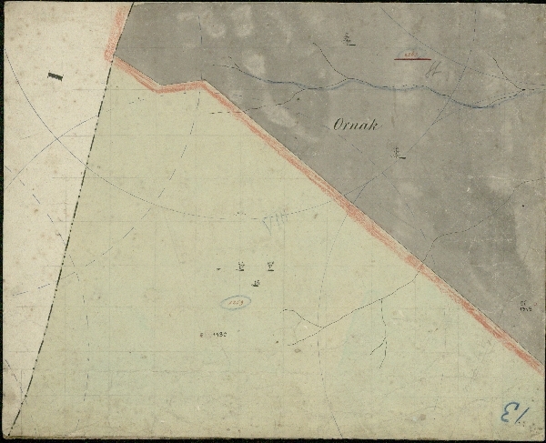 Kolorowana mapa katastralna Doliny Kościeliskiej z uwagami z epoki. Brak legendy.