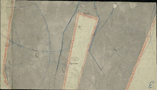 Kolorowana mapa katastralna Doliny Kościeliskiej z uwagami z epoki. Brak legendy.