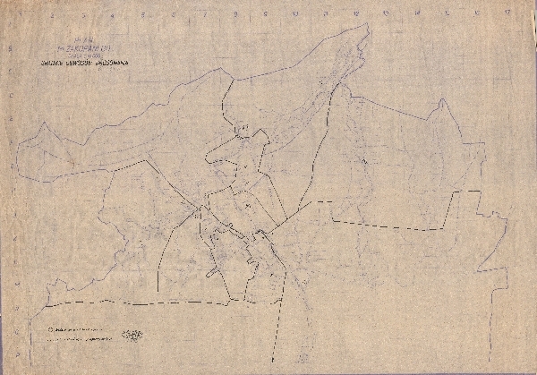 Granice obwodów głosowania i siedziby komisji w 1974 r. zaznaczone na planie Zakopanego. Na planie zaznaczono potoki i ulice, linię kolejową na Gubałówkę. Objaśnienia.