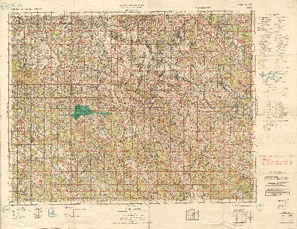 Mapa topograficzna Beskidu Niskiego w rejonie Jasła i Sanoka. Rzeźba przedstawiona przy pomocy poziomic, punkty wysokości. Sieć hydrograficzna. Zaznaczone obszary zalesione. Komunikacja - drogi i koleje. Osadnictwo. Zaznaczona granica państwowa i inne granice administracyjne. Objaśnienia w j. pol. i niem.