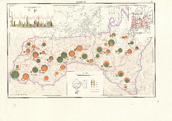 Mapa pasterstwa na obszarze polskiej części Tatr. Na podkładzie poziomicowym zaznaczono granice hal oraz ilości wypasanych owiec i bydła w roku 1926 i 1953. Zaznaczono szałasy. Dodatkowo wykres ilości wypasanego inwentarza na poszczególnych halach w roku 1871, 1926 i 1953. Dodatkowo mapka ukazująca związki hal ze wsiami Podhala. Objaśnienia.