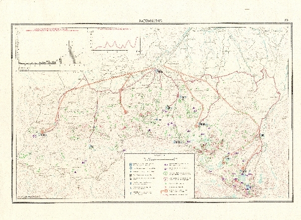 Mapa ratownictwa na obszarze Tatr Polskich. Na podkładzie poziomicowym zaznaczono miejsca wypadków turystycznych, taternickich i lawinowych, trasy przelotu śmigłowca oraz stacje GT GOPR. Dodatkowo niepokolorowane zestawienie wypadków turystycznych i taternickich w Tatrach w latach 1909 - 1976 oraz wypadków narciarskich wymagających transportu w latach 1953 - 1975. Objaśnienia.