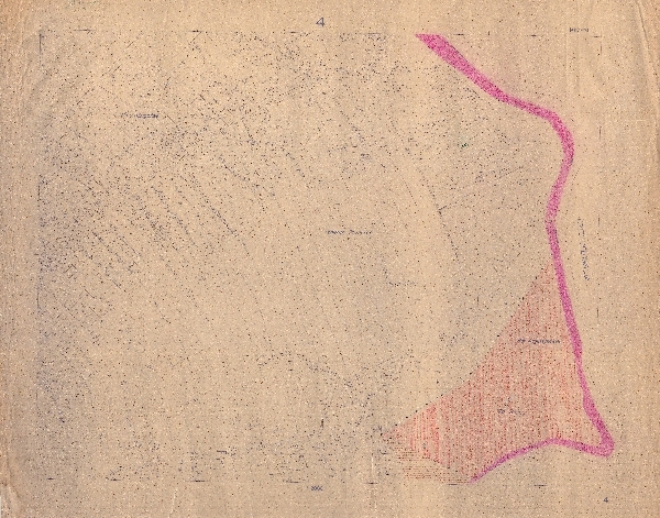 Mapa katastralna Brzegów, rejon Za Rynias. Zaznaczone własności i współwłasności gruntów.
