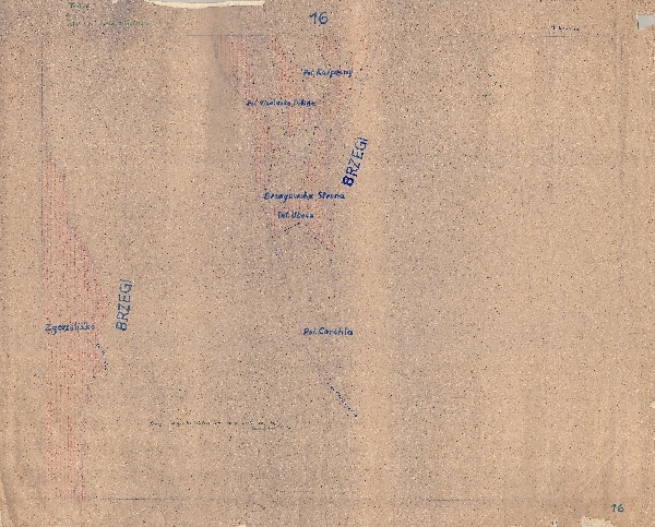 Mapa katastralna Brzegów. Zaznaczone własności i współwłasności gruntów.