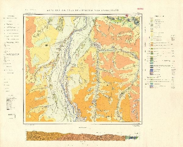 Szczegółowa mapa geologiczna Tatr obejmująca litologię, stratygrafię i tektonikę, wykonana na podkładzie mapy topograficznej, obejmująca rejon Trybszu. Zaznaczone poziomice i sieć hydrograficzna. Objaśnienia symboli oraz znaków. Pod mapą przekrój geologiczny.