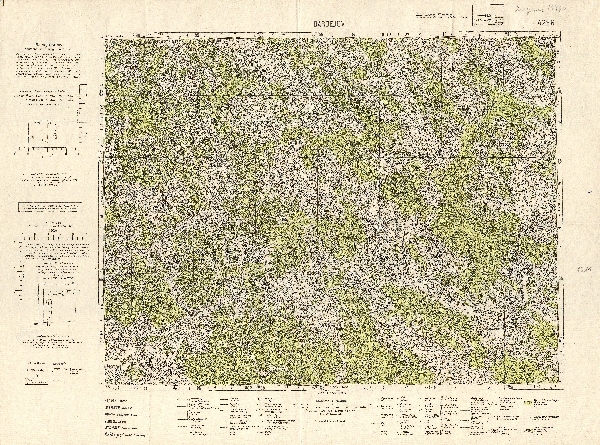Mapa topograficzna obejmująca Beskid Sądecki. Rzeźba przedstawiona metodą poziomicowo - kreskową. Sieć rzeczna. Poza ramką legenda w j. niem. i cz.