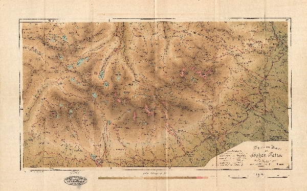 Mapa turystyczna. Rzeźba przedstawiona metodą poziomic i skali barw zmieniające się co 100 m. Punkty wysokości. Sieć hydrograficzna - rzeki, jeziora. Treść turystyczna, zaznaczone drogi i szlaki turystyczne.