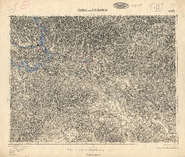 Mapa topograficzna obejmująca Pieniny między Grywałdem a Piwniczną. Rzeźba przedstawiona metodą poziomicowo - kreskową. Sieć hydrograficzna. Zaznaczone obszary zalesione. Komunikacja - drogi i koleje. Osadnictwo. Wybrane znaki objaśniono poza ramką. Dunajec w Pieninach odręcznie zaznaczony kolorem niebieskim.