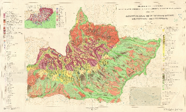 Mapa geomorfologiczna Tatr Wysokich i Tatr Bielskich naniesiona na podkładzie topograficznym. Zaznaczone typy form rzeźby terenu opisane w legendzie w j. ang. Dodatkowo mapa zasięgu zlodowaceń tatrzańskich w plejstocenie (26x15 cm).