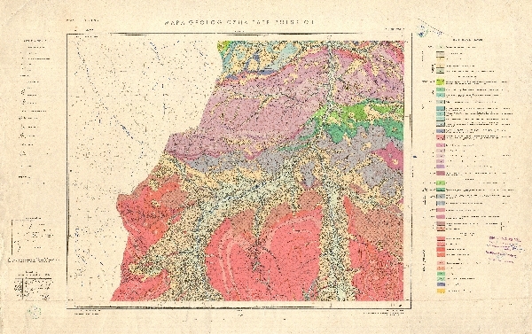 Szczegółowa mapa geologiczna, geomorfologiczna Tatr obejmująca litologię, tektonikę i stratygrafię, wykonana na podkładzie mapy topograficznej, obejmująca Tatry Zachodnie w rejonie Bobrowca. Zaznaczone poziomice i sieć hydrograficzna. Objaśnienia symboli oraz znaków.