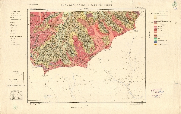 Szczegółowa mapa geologiczna, geomorfologiczna Tatr obejmująca litologię, tektonikę i stratygrafię, wykonana na podkładzie mapy topograficznej, obejmująca Tatry Zachodnie w rejonie Kamienistej i Błyszcza. Zaznaczone poziomice i sieć hydrograficzna. Objaśnienia symboli oraz znaków.