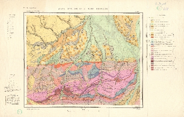 Szczegółowa mapa geologiczna, geomorfologiczna Tatr obejmująca litologię, tektonikę i stratygrafię, wykonana na podkładzie mapy topograficznej, obejmująca Tatry Zachodnie w rejonie Łysanek. Zaznaczone poziomice i sieć hydrograficzna. Objaśnienia symboli oraz znaków.