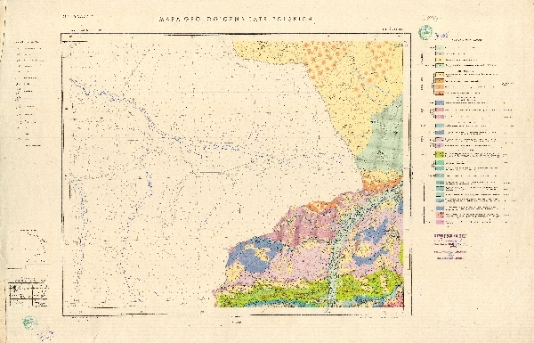 Szczegółowa mapa geologiczna, geomorfologiczna Tatr obejmująca geologię i tektonikę, wykonana na podkładzie mapy topograficznej, obejmująca Furkaskę i Wielkie Koryciska. Zaznaczone poziomice i sieć hydrograficzna. Objaśnienia symboli oraz znaków.