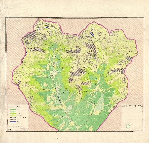 Niedokończona mapa Doliny Raczkowej i Doliny Jamnickiej z zaznaczoną siecią hydrograficzną. Naniesiono poziomice. Zaznaczono pokrycie roślinnością.