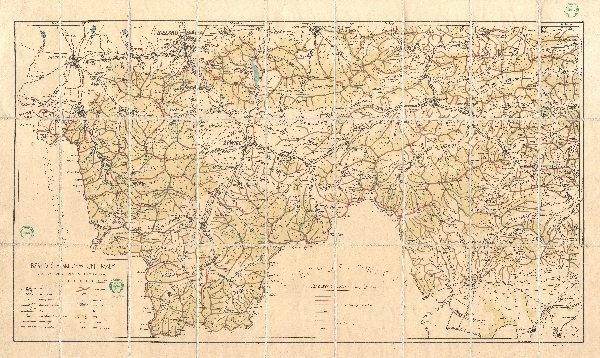 Mapa grzbietowa obejmująca obszar od Ustronia po Myślenice. Zaznaczone grzbiety i szczyty z podaniem wysokości. Sieć hydrograficzna. Zaznaczono obszary zalesione. Komunikacja - drogi i koleje. Osadnictwo. Zaznaczone szlaki turystyczne, nartostrady i obiekty turystyczne. Objaśnienia.