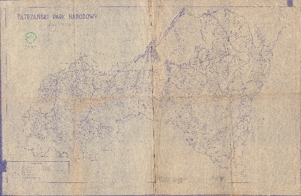 Mapa podziału Tatrzańskiego Parku Narodowego na oddziały. W podkładzie sieć hydrograficzna, drogi i szlaki turystyczne.