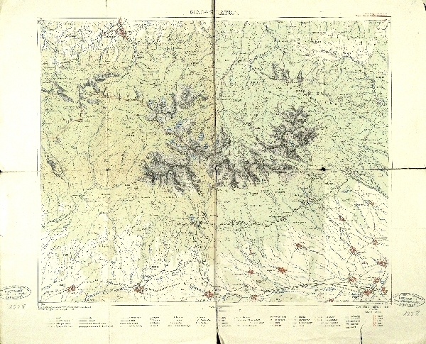 Mapa turystyczna obejmująca Tatry Wysokie, Tatry Bielskie i Tatry Zachodnie po Dolinę Kościeliską. Rzeźba przedstawiona poziomicami, w obszarze wysokogórskim rysunek skał i cieniowanie. Sieć hydrograficzna. Naniesione szlaki turystyczne i ścieżki w Tatrach.