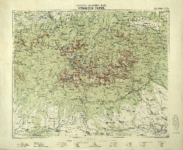 Mapa turystyczna obejmująca Tatry Wysokie, Tatry Bielskie i Tatry Zachodnie po Dolinę Kościeliską. Rzeźba przedstawiona poziomicami. W obszarze wysokogórskim rysunek skał w kolorze brązowym. Sieć hydrograficzna. Zaznaczone szlaki turystyczne i drogi w Tatrach.