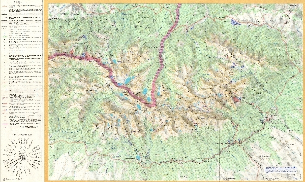 Mapa narciarska, poziomicowa obejmująca Tatry Wysokie i Tatry Bielskie. Zaznaczone niektóre szlaki turystyczne oraz trasy narciarskie, tereny zjazdowe, koleje linowe i wyciągi narciarskie oraz tory saneczkowe. Zaznaczono zagrożenie lawinowe. Komunikacja - koleje i drogi. Osadnictwo. Legenda w j. słow., niem., ros., ang.