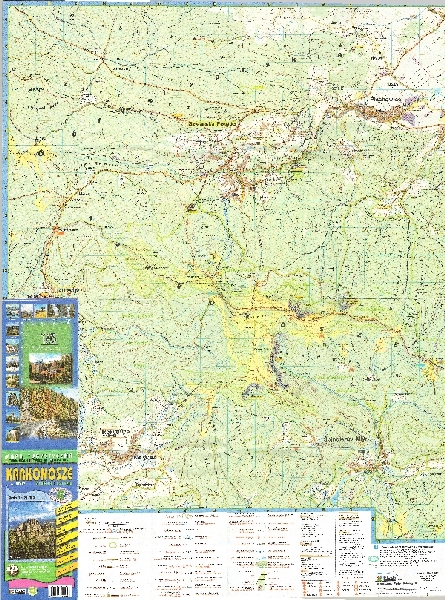 Mapa turystyczna Karkonoszy i Pogórze Karkonoszy po Jelenią Górę wykonana na podkładzie topograficznym. Rzeźba zaznaczona poziomicami, w obszarze wysokogórskim rysunek skał. Sieć hydrograficzna. Zaznaczono obszary zalesione. Komunikacja - drogi i koleje. Osadnictwo. Zaznaczone granice parków narodowych i rezerwatów przyrody, szlaki turystyczne, obiekty turystyczne, tereny narciarskie i zabytki. Poza mapą 14 fotografii z opisami ciekawszych obiektów turystycznych.