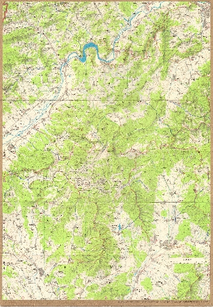 Mapa obejmująca region Strážovské vrchy. Rzeźba przedstawiona przy pomocy poziomic i cieniowania. Zaznaczone partie skaliste, punkty wysokościowe. Sieć hydrograficzna. Zaznaczono obszary zalesione. Komunikacja - drogi i koleje. Osadnictwo. Zaznaczone szlaki turystyczne, zabytki, obszary chronione, obiekty turystyczne.