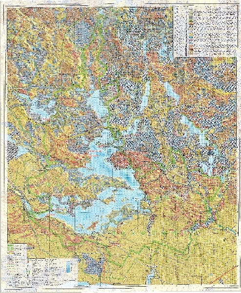 Szczegółowa mapa Wigierskiego Parku Narodowego z naniesioną budową geologiczną podłoża. Rzeźba zaznaczona metodą cieniowania. Sieć hydrograficzna. Komunikacja - drogi i koleje. Zaznaczone miejscowości. Naniesiono granice parku narodowego, obszarów ochrony ścisłej i rezerwatów. Zaznaczono ścieżki edukacyjna, szlaki piesze, szlaki rowerowe i konne oraz kajakowe, obiekty turystyczne, użyteczności publicznej i historyczne. Zaznaczono głębokości jezior. Zaznaczono punkty geologiczne i osady czwartorzędowe. Objaśnienia.