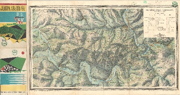 Szczegółowa mapa Pienińskiego Parku Narodowego. Rzeźba zaznaczona przy pomocy poziomic, cieniowania i punktów wysokości. Zaznaczono obszary zalesione. Komunikacja - drogi. Osadnictwo. Zaznaczone granice państwa, granice Pienińskiego Parku Narodowego i rezerwatów przyrody. Zaznaczono szlaki turystyczne, obiekty turystyczne, zabytki, obiekty użyteczności publicznej, miejsca niebezpieczne dla kajakarzy. Objaśnienia.